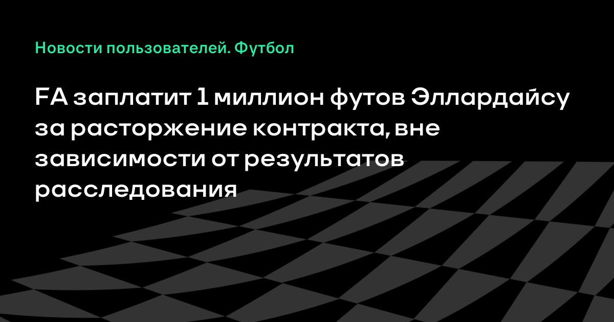 FA заплатит 1 миллион футов Эллардайсу за расторжение контракта, вне зависимости от результатов расследования