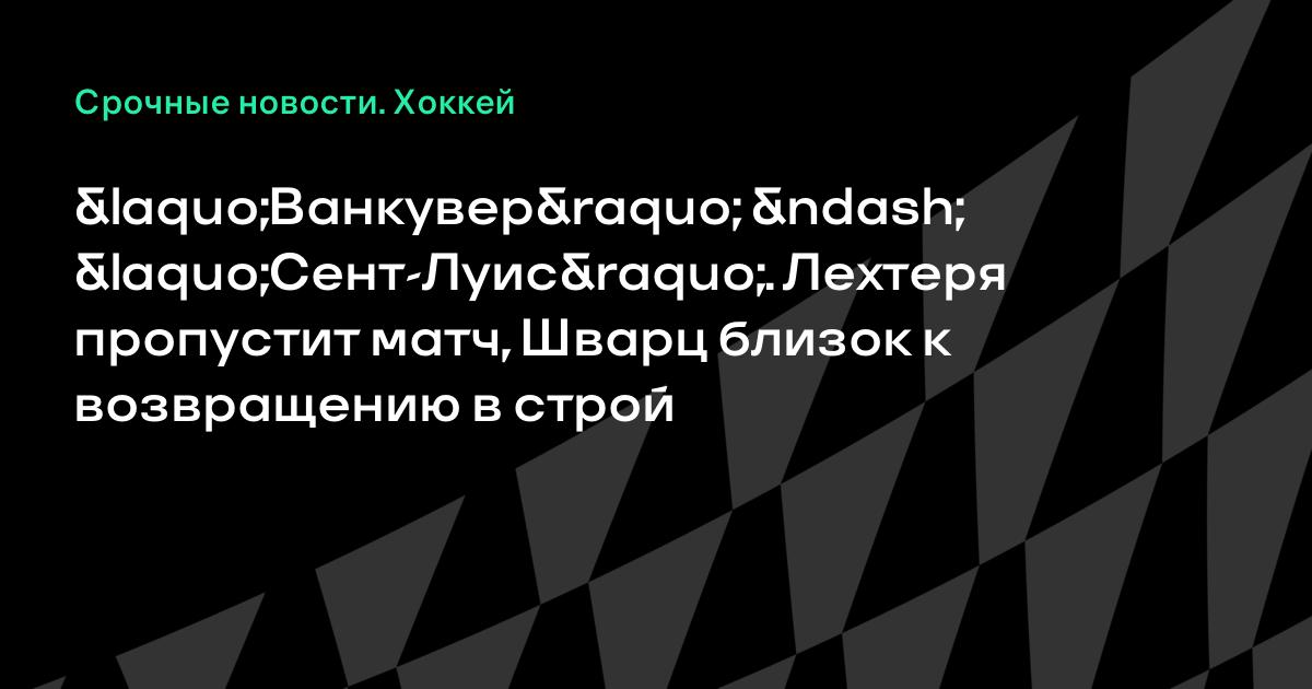 «Ванкувер» – «Сент-Луис». Лехтеря пропустит матч, Шварц близок к возвращению в строй