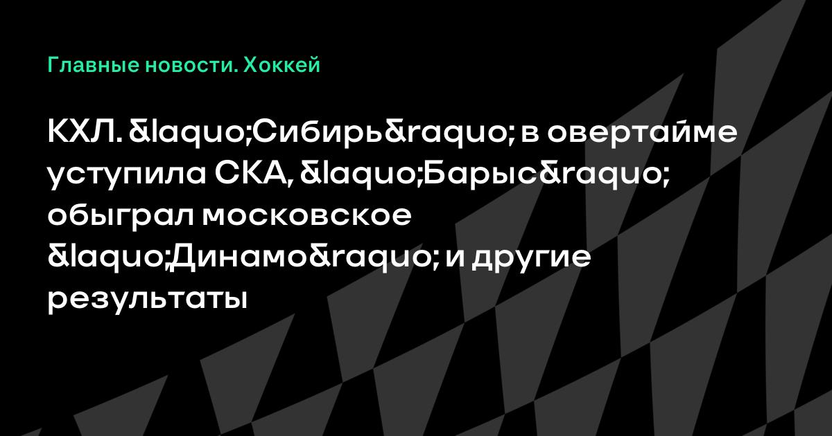КХЛ. «Сибирь» в овертайме уступила СКА, «Барыс» обыграл московское «Динамо» и другие результаты