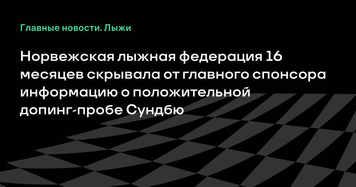 По сообщению телеканала TV2, Федерация лыжных видов спорта Норвегии в течение 16 месяцев утаивала от своего главного спонсора – банка Sparebank 1 – информацию о положительной допинг-пробе Мартина Йонсруда Сундбю.