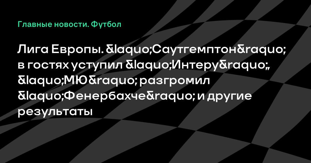 Лига Европы. «Саутгемптон» в гостях уступил «Интеру», «МЮ» разгромил «Фенербахче» и другие результаты