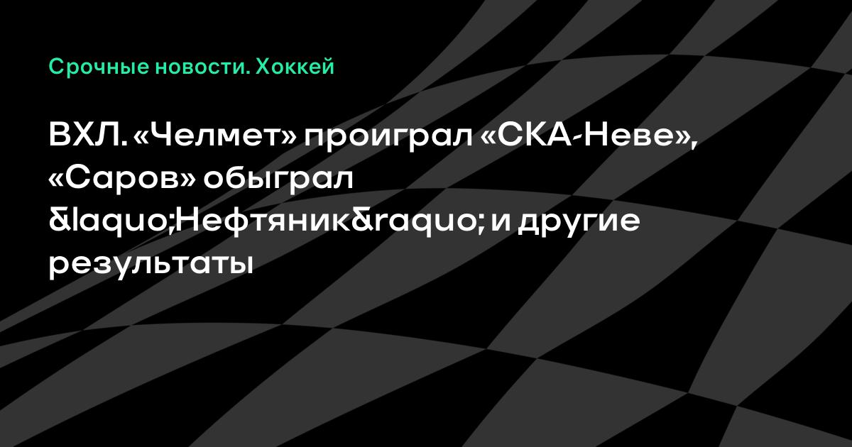 20 октября 2016, 21:55 ВХЛ. «Челмет» проиграл «СКА-Неве», «Саров» обыграл «Нефтяник» и другие результаты В регулярном чемпионате ВХЛ сегодня прошли 4 матча. ВХЛ Регулярный чемпионат Южный Урал – Звезда – 3:4 Б (0:0, 2:1, 1:2, 0:0, 0:1) Челмет – СКА-Нева – 2:4 (1:1, 1:1, 0:2) Ариада – Барс – 5:3 (3:2, 1:0, 1:1) Саров – Нефтяник – 4:0 (2:0, 0:0, 2:0) Как посмотреть матч «Динамо» – ЦСКА из VIP-ложи? Хоккей Челмет Южный Урал Нефтяник Альметьевск результаты матчей Ариада Саров Барс ВХЛ Звезда Москва