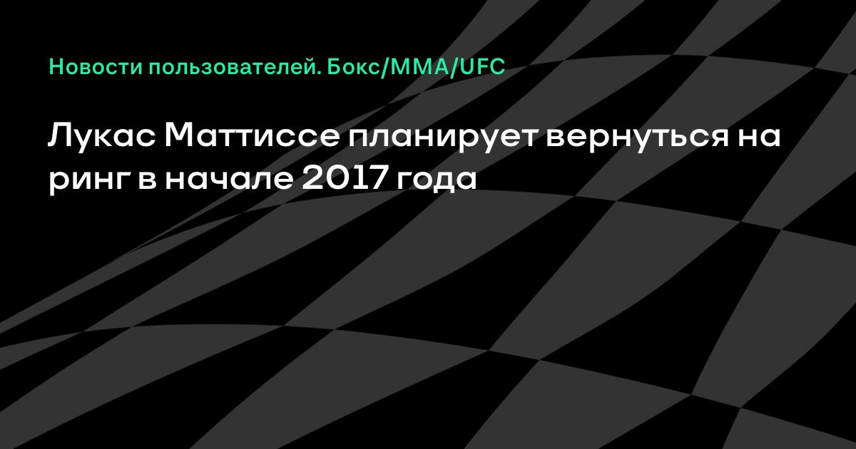 Лукас Маттиссе планирует вернуться на ринг в начале 2017 года