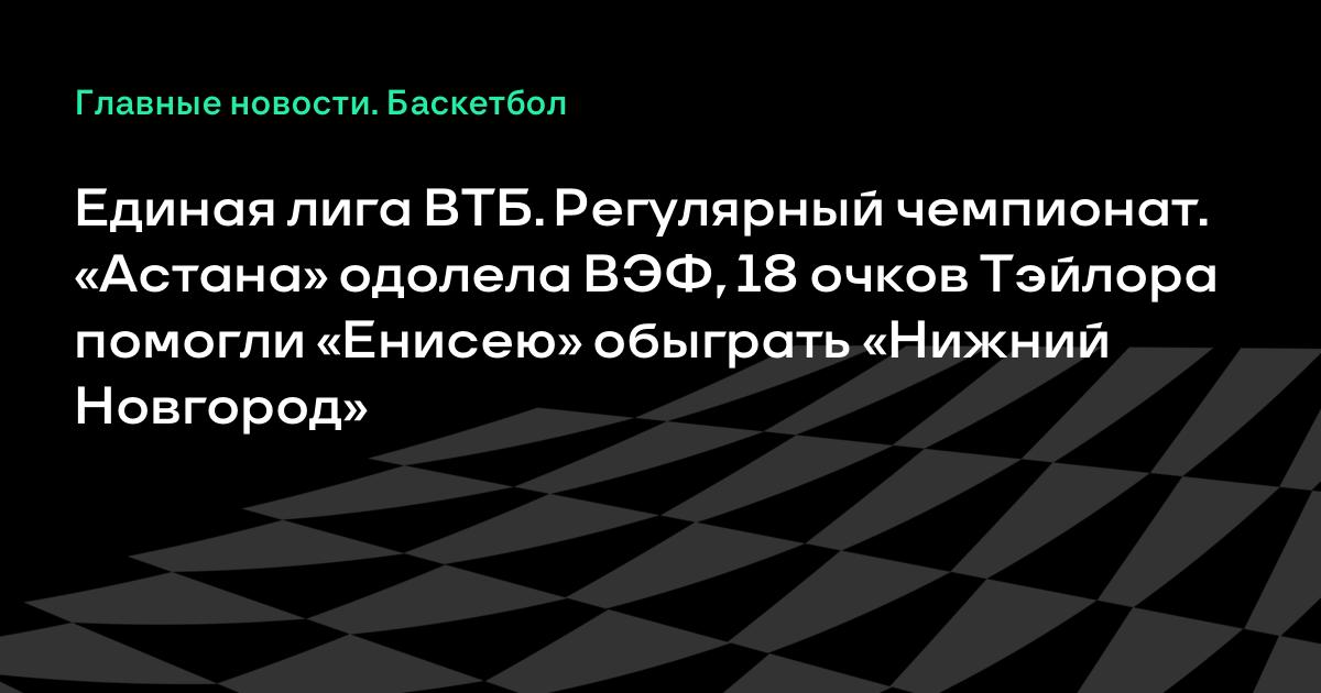 Единая лига ВТБ. Регулярный чемпионат. «Астана» одолела ВЭФ, 18 очков Тэйлора помогли «Енисею» обыграть «Нижний Новгород»