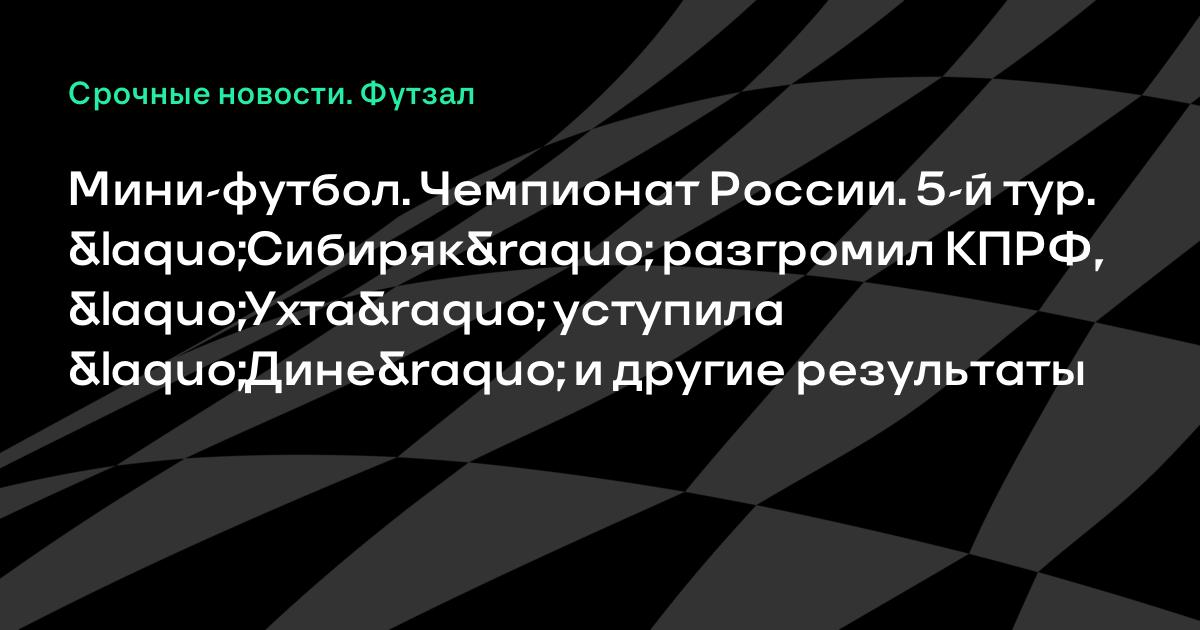 В чемпионате России по мини-футболу прошли матчи 5-го тура. «Ухта» уступила «Дине» (0:3), «Сибиряк» победил КПРФ (7:2).