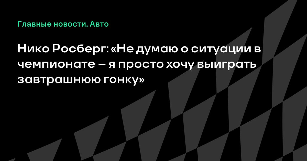 Нико Росберг: «Не думаю о ситуации в чемпионате – я просто хочу выиграть завтрашнюю гонку»