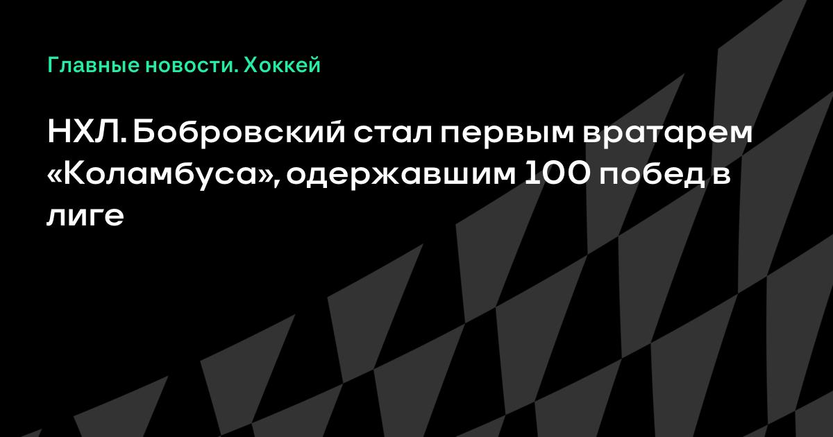 НХЛ. Бобровский стал первым вратарем «Коламбуса», одержавшим 100 побед в лиге