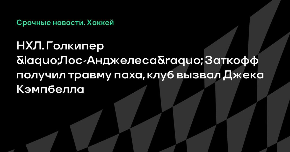 НХЛ. Голкипер «Лос-Анджелеса» Заткофф получил травму паха, клуб вызвал Джека Кэмпбелла