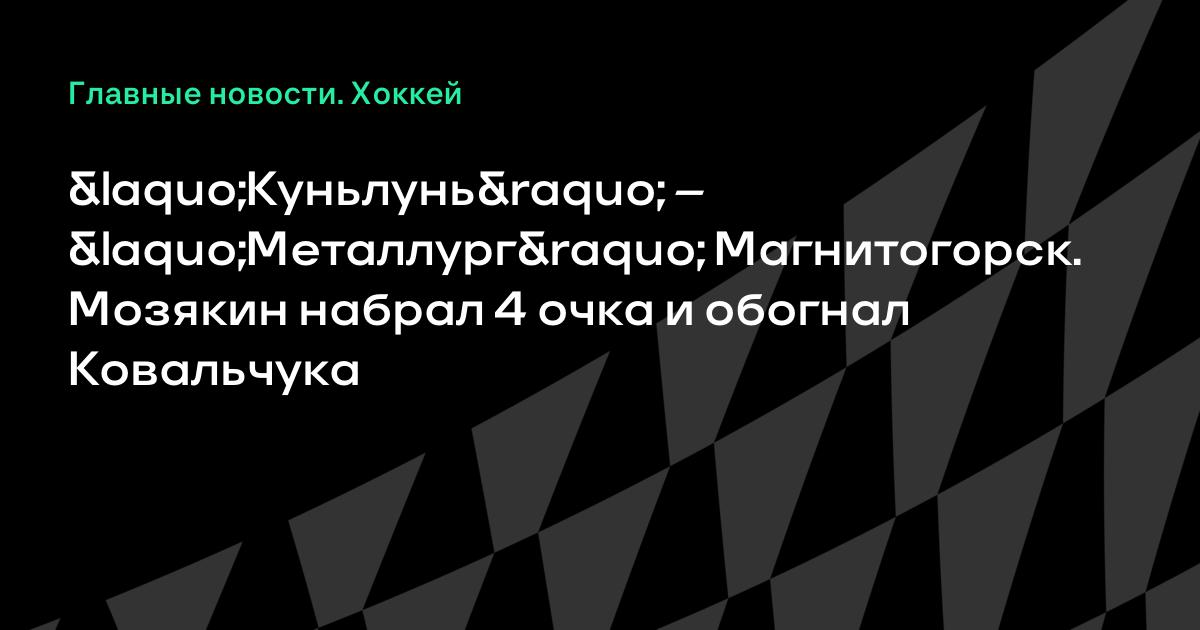 «Куньлунь» – «Металлург» Магнитогорск. Мозякин набрал 4 очка и обогнал Ковальчука