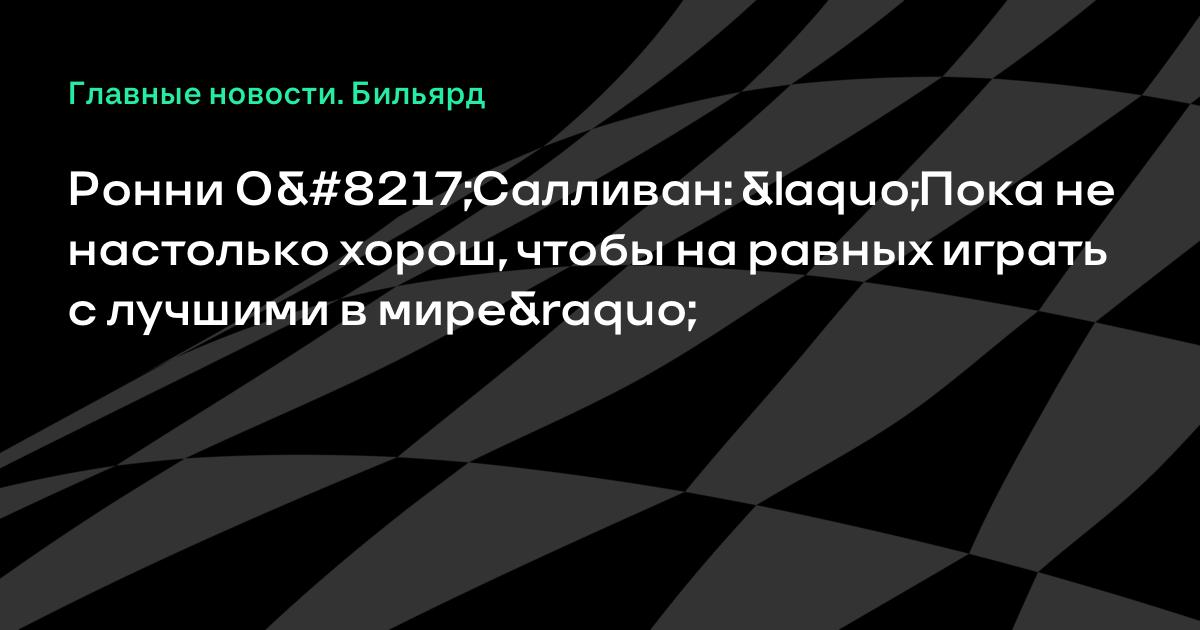 Я буду продолжать играть и, надеюсь, что все-таки достигну результата. Если нет, то у меня все равно останется удовольствие от самого процесса», – рассказал О’Салливан.