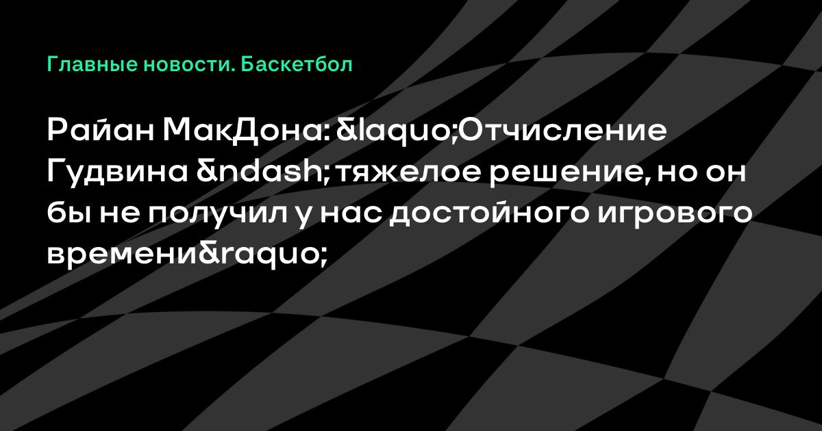 Райан МакДона: «Отчисление Гудвина – тяжелое решение, но он бы не получил у нас достойного игрового времени»