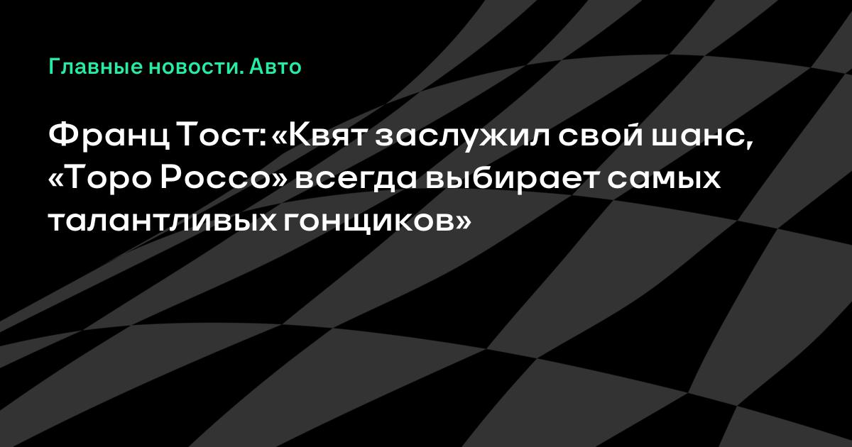 Франц Тост: «Квят заслужил свой шанс, «Торо Россо» всегда выбирает самых талантливых гонщиков»