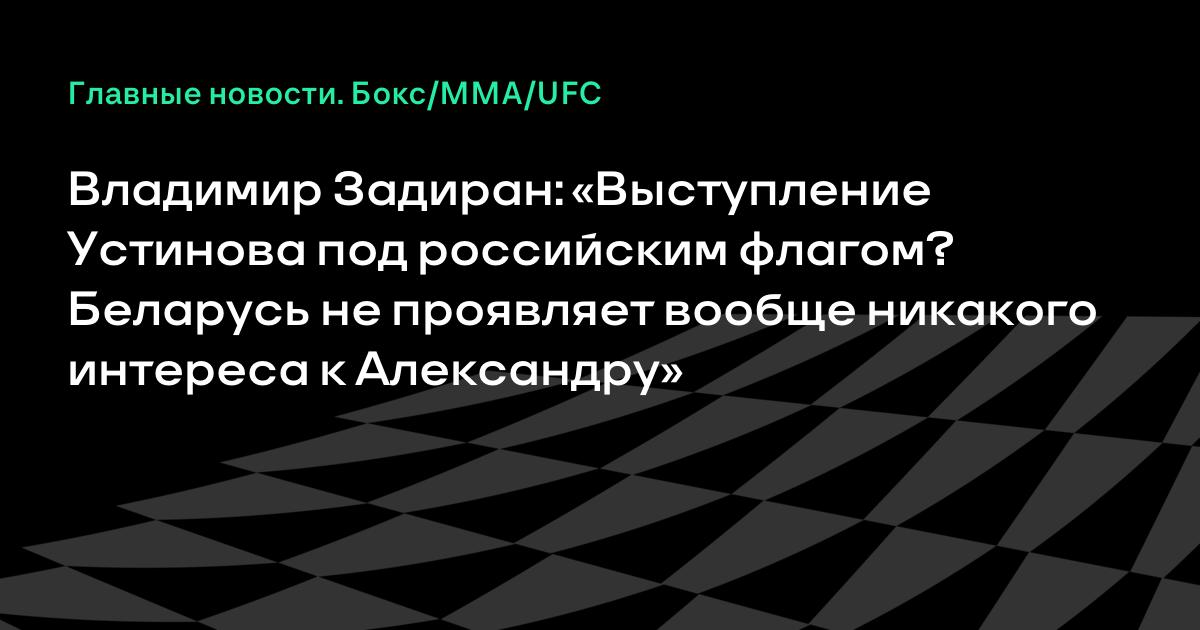 Владимир Задиран: «Выступление Устинова под российским флагом? Беларусь не проявляет вообще никакого интереса к Александру»