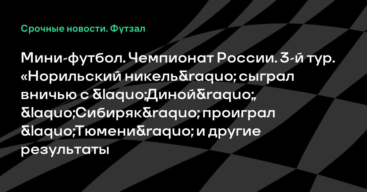 Мини-футбол. Чемпионат России. 3-й тур. «Норильский никель» сыграл вничью с «Диной», «Сибиряк» проиграл «Тюмени» и другие результаты