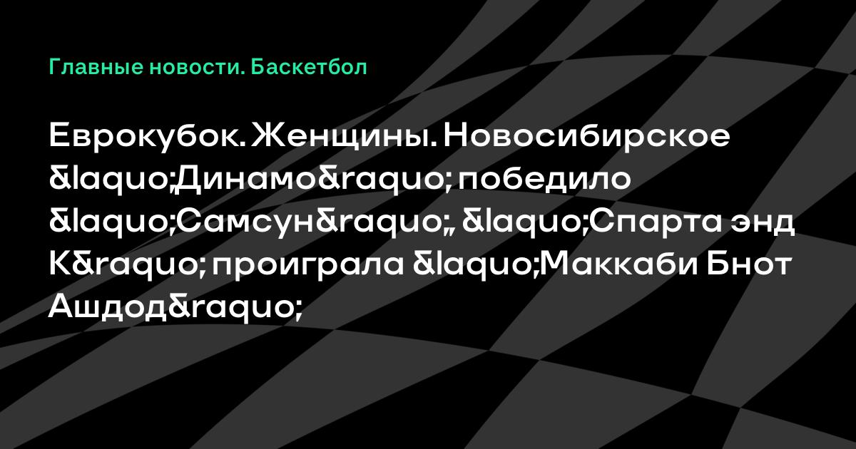 Еврокубок. Женщины. Новосибирское «Динамо» победило «Самсун», «Спарта энд К» проиграла «Маккаби Бнот Ашдод»