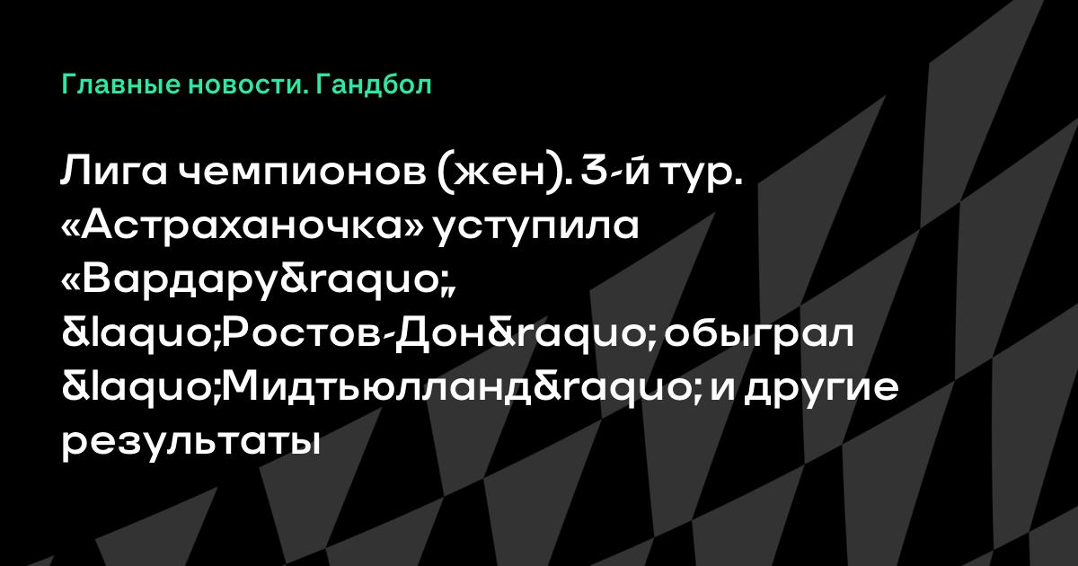 Лига чемпионов (жен). 3-й тур. «Астраханочка» уступила «Вардару», «Ростов-Дон» обыграл «Мидтьюлланд» и другие результаты