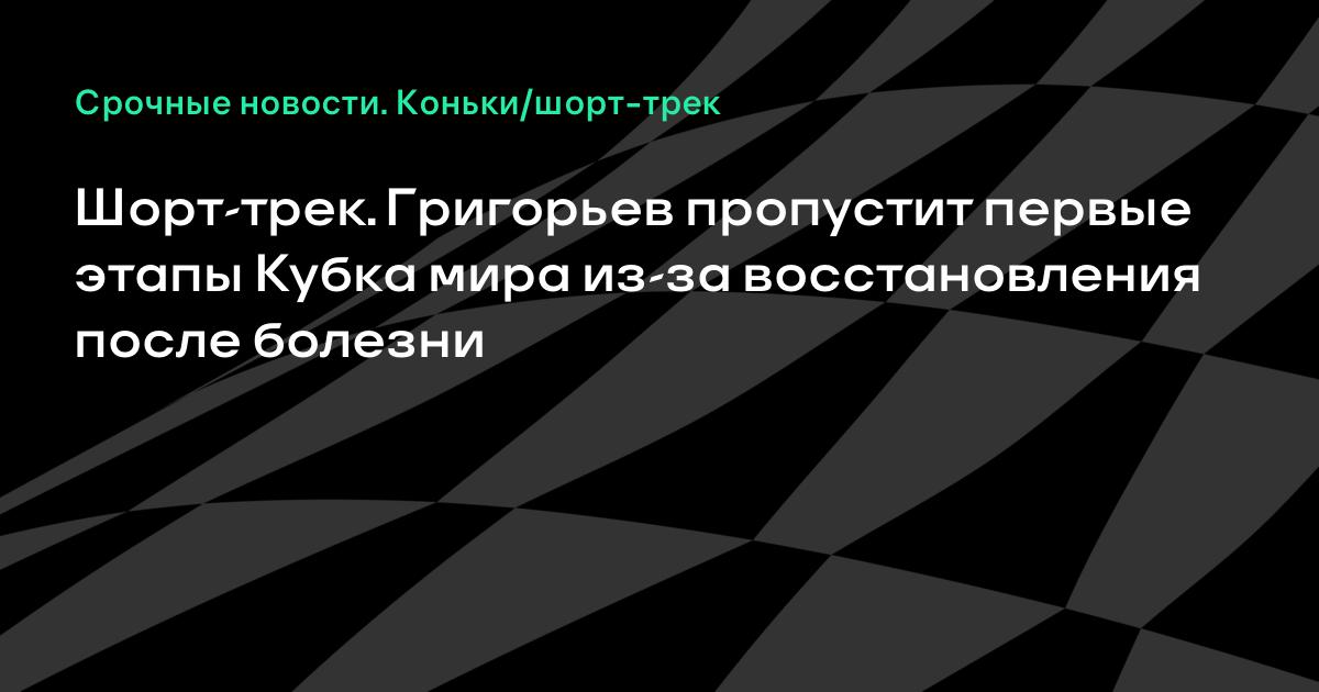 Шорт-трек. Григорьев пропустит первые этапы Кубка мира из-за восстановления после болезни