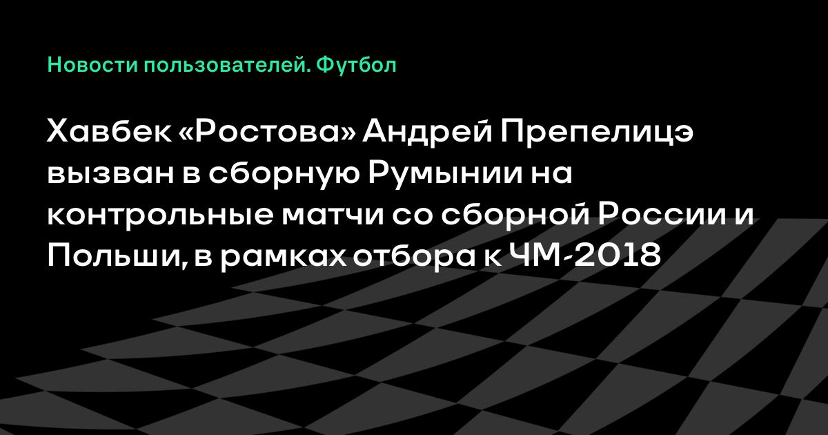 Хавбек «Ростова» Андрей Препелицэ вызван в сборную Румынии на контрольные матчи со сборной России и Польши, в рамках отбора к ЧМ-2018