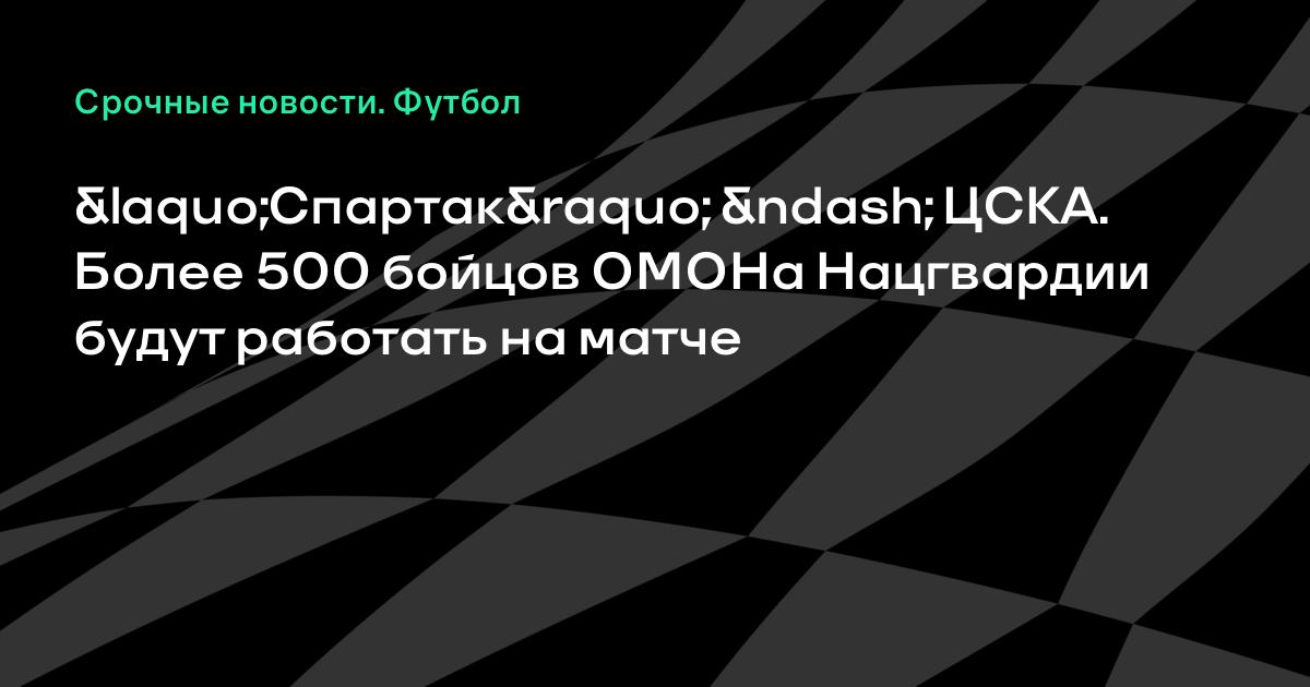 На матче 12-го тура чемпионата России «Спартак» – ЦСКА будут работать более 500 бойцов ОМОНа Нацгвардии.