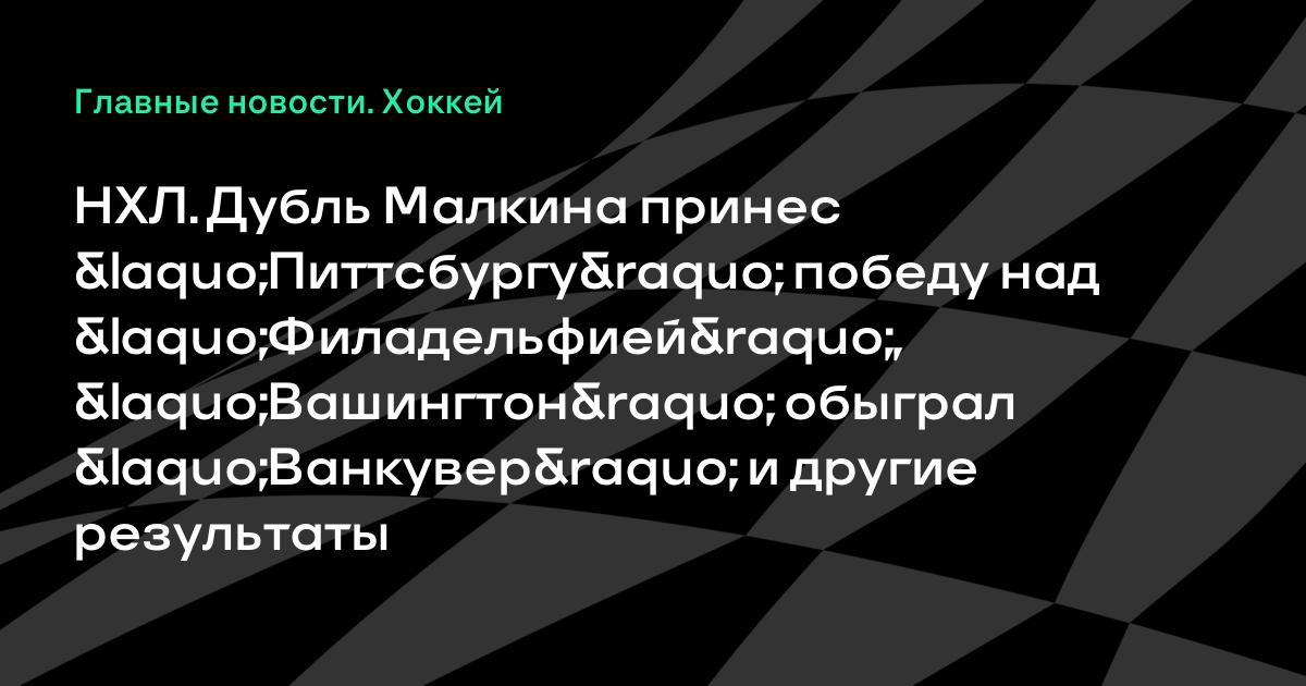 НХЛ. Дубль Малкина принес «Питтсбургу» победу над «Филадельфией», «Вашингтон» обыграл «Ванкувер» и другие результаты