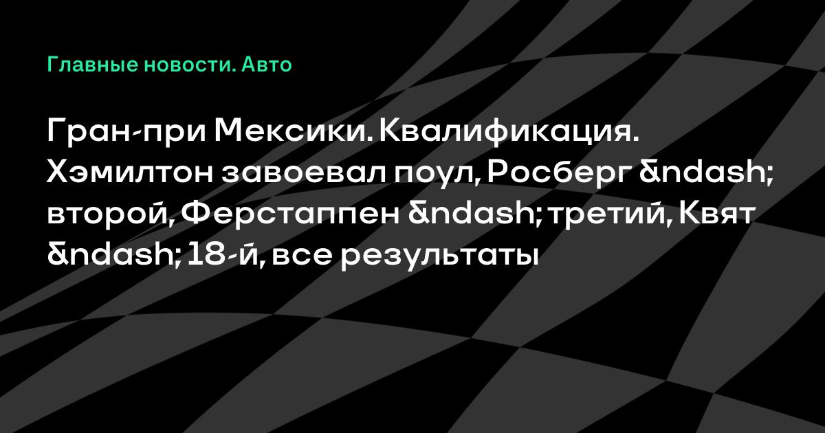 Гран-при Мексики. Квалификация. Хэмилтон завоевал поул, Росберг – второй, Ферстаппен – третий, Квят – 18-й, все результаты