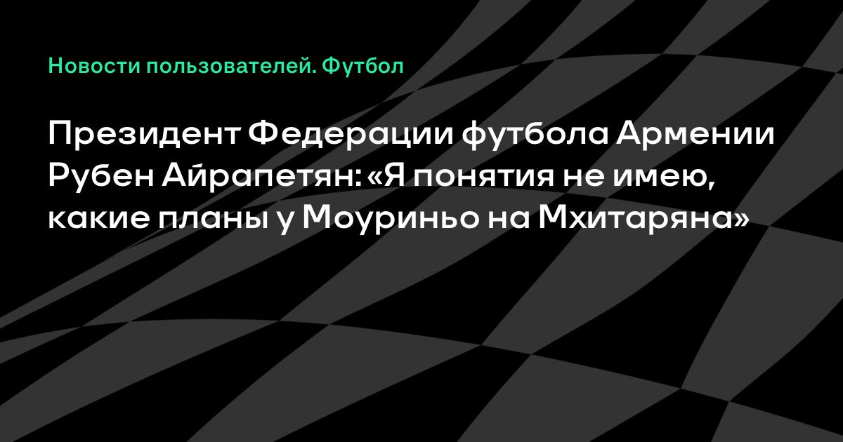 Президент Федерации футбола Армении Рубен Айрапетян: «Я понятия не имею, какие планы у Моуриньо на Мхитаряна»
