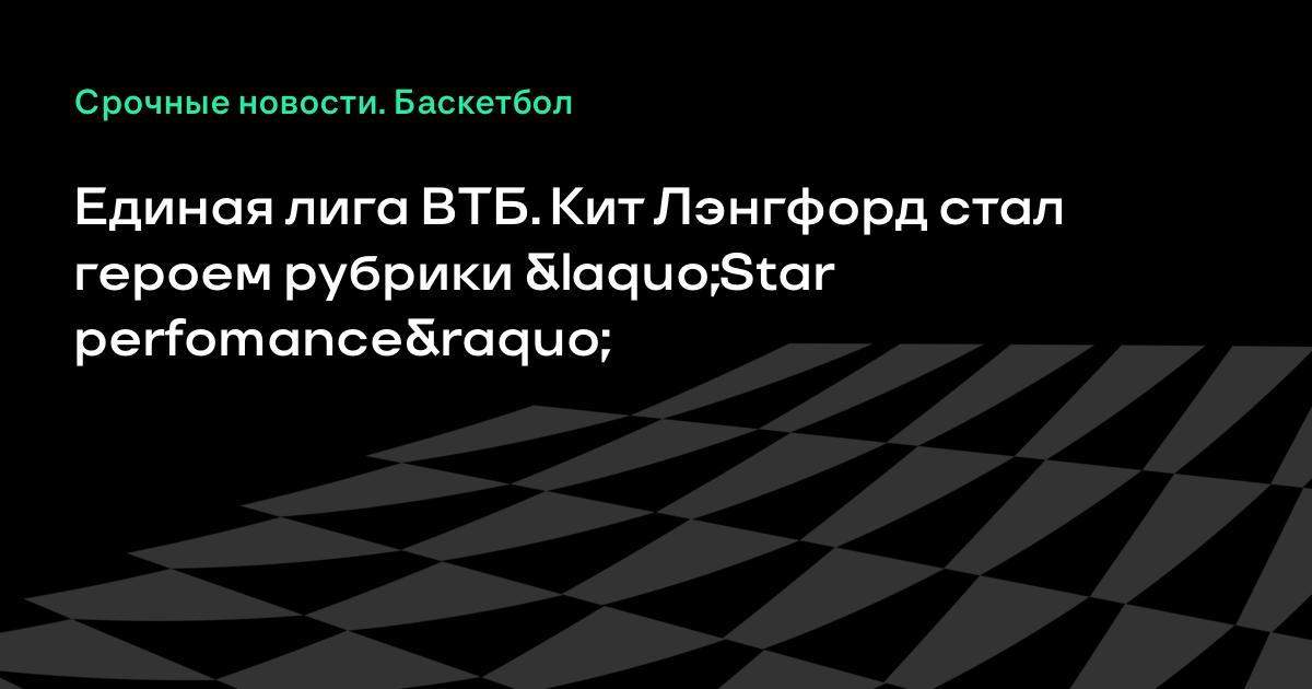 Единая лига ВТБ. Кит Лэнгфорд стал героем рубрики «Star perfomance»