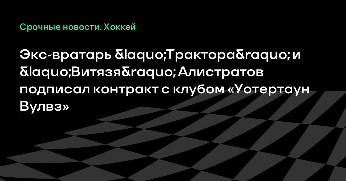 Экс-вратарь «Трактора» и «Витязя» Алистратов подписал контракт с клубом «Уотертаун Вулвз»