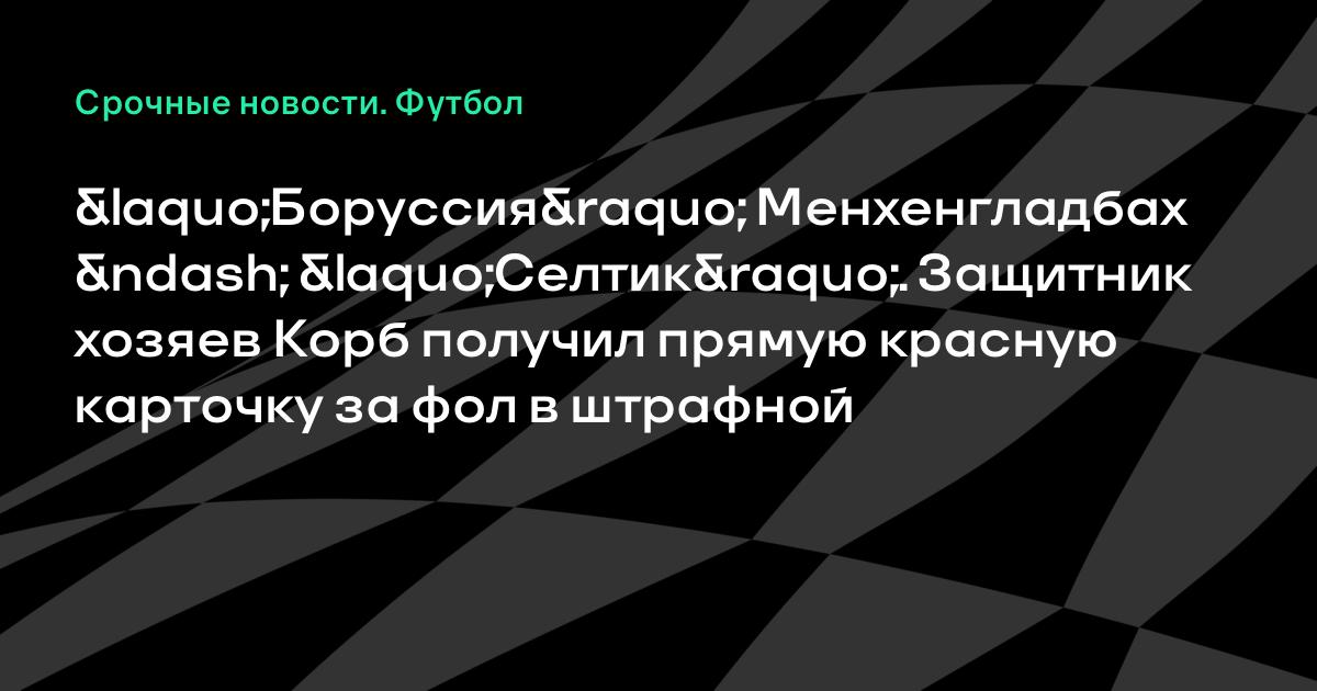 «Боруссия» Менхенгладбах – «Селтик». Защитник хозяев Корб получил прямую красную карточку за фол в штрафной