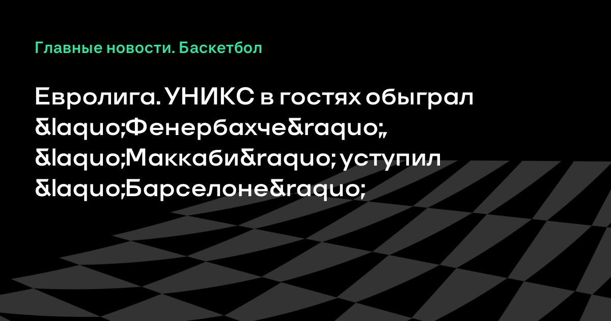Евролига. УНИКС в гостях обыграл «Фенербахче», «Маккаби» уступил «Барселоне»