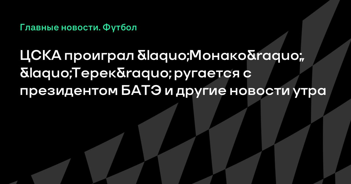 ЦСКА проиграл «Монако», «Терек» ругается с президентом БАТЭ и другие новости утра