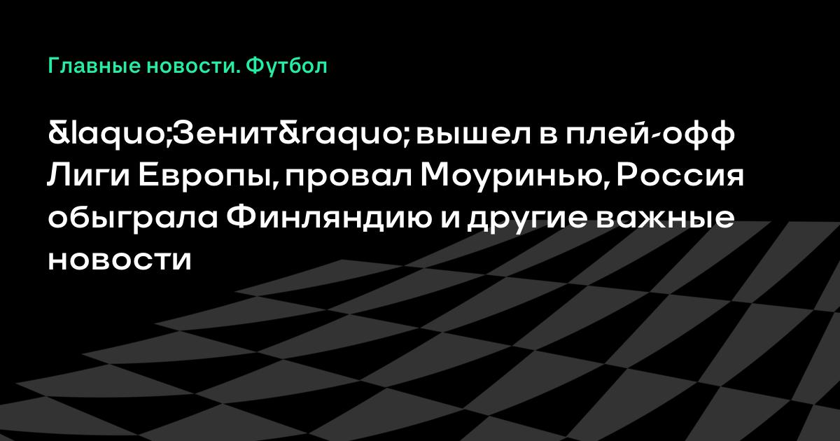 «Зенит» вышел в плей-офф Лиги Европы, провал Моуринью, Россия обыграла Финляндию и другие важные новости
