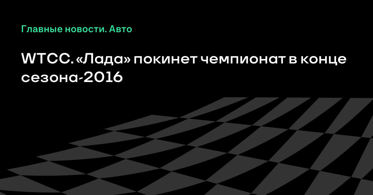 «Лада» покинет гоночную серию WTCC по окончании сезона-2016, сообщает Motorsport. Предполагается, что уход производителя, участвовавшего в чемпионате на протяжении пяти последних лет, связан с изменением глобальной стратегии, и желании сосредоточиться на выступлении в российских гоночных сериях, таких, как RRC.