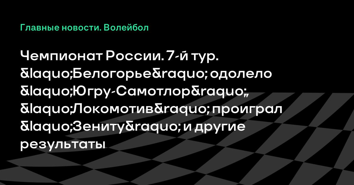 Чемпионат России. 7-й тур. «Белогорье» одолело «Югру-Самотлор», «Локомотив» проиграл «Зениту» и другие результаты