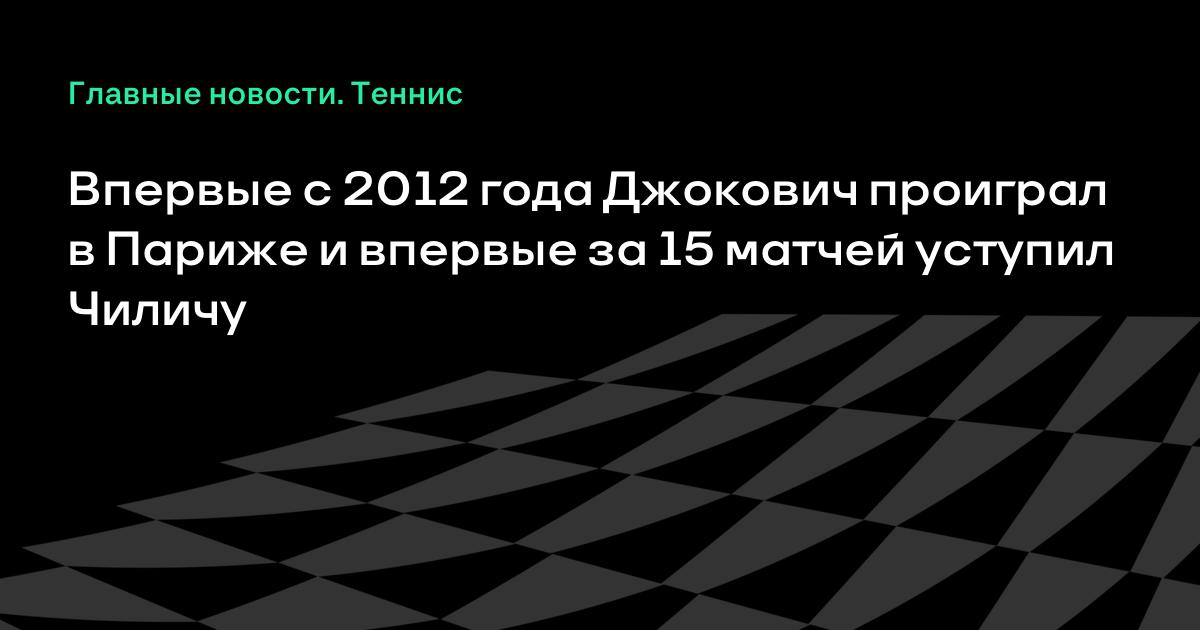 Впервые с 2012 года Джокович проиграл в Париже и впервые за 15 матчей уступил Чиличу