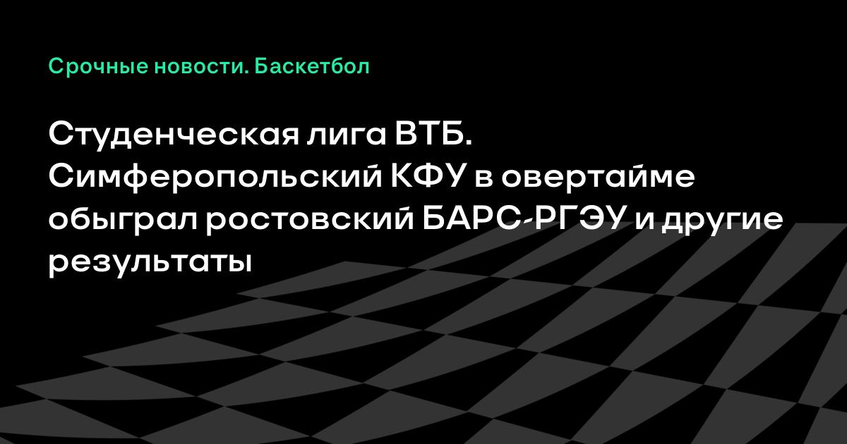 Студенческая лига ВТБ. Симферопольский КФУ в овертайме обыграл ростовский БАРС-РГЭУ и другие результаты