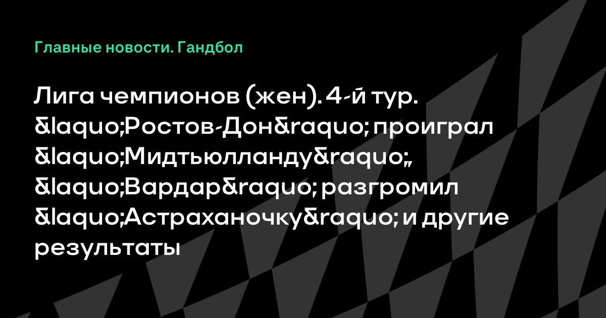 Лига чемпионов (жен). 4-й тур. «Ростов-Дон» проиграл «Мидтьюлланду», «Вардар» разгромил «Астраханочку» и другие результаты