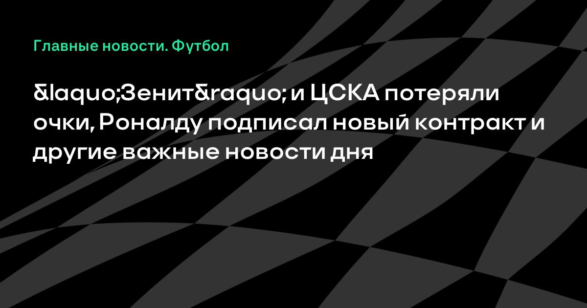 «Зенит» и ЦСКА потеряли очки, Роналду подписал новый контракт и другие важные новости дня
