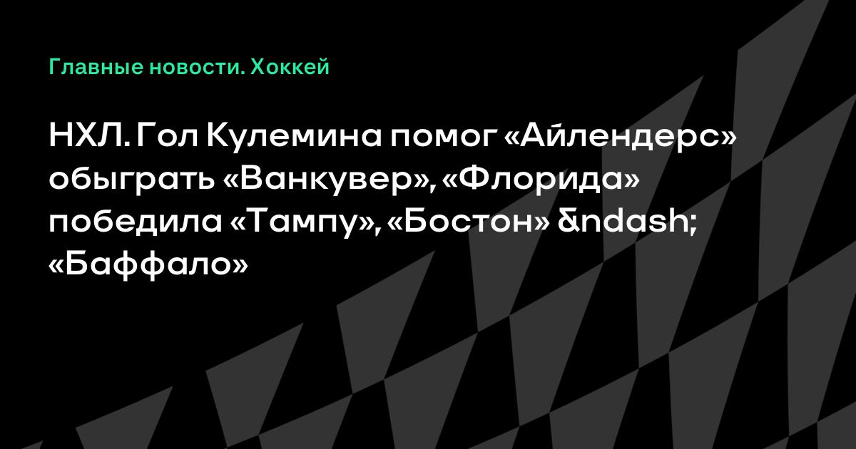 НХЛ. Гол Кулемина помог «Айлендерс» обыграть «Ванкувер», «Флорида» победила «Тампу», «Бостон» – «Баффало»