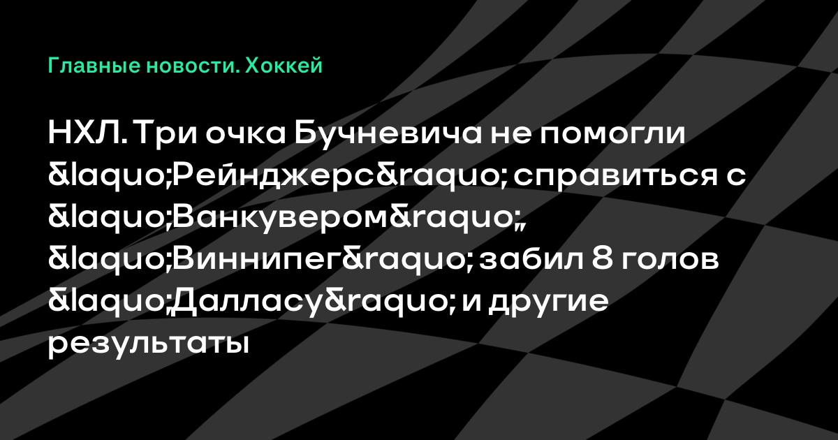 НХЛ. Три очка Бучневича не помогли «Рейнджерс» справиться с «Ванкувером», «Виннипег» забил 8 голов «Далласу» и другие результаты
