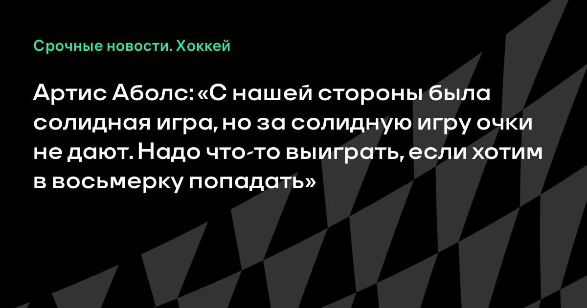 Артис Аболс: «С нашей стороны была солидная игра, но за солидную игру очки не дают. Надо что-то выиграть, если хотим в восьмерку попадать»