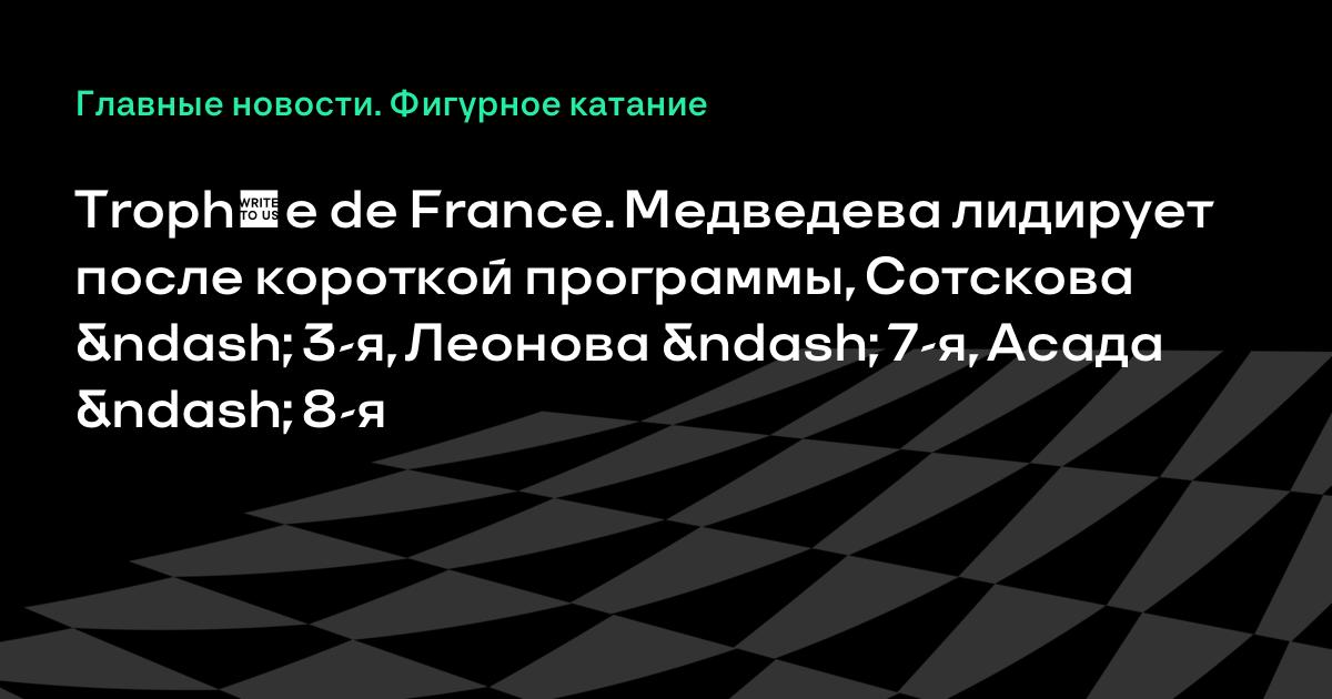 Trophée de France. Медведева лидирует после короткой программы, Сотскова – 3-я, Леонова – 7-я, Асада – 8-я