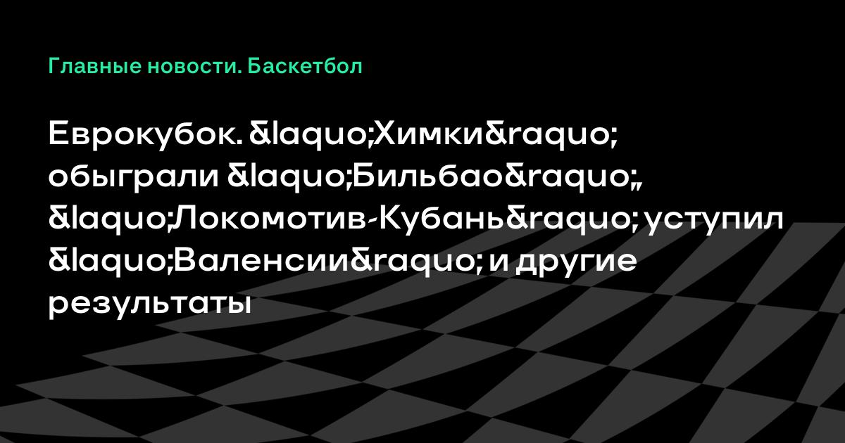 Еврокубок. «Химки» обыграли «Бильбао», «Локомотив-Кубань» уступил «Валенсии» и другие результаты