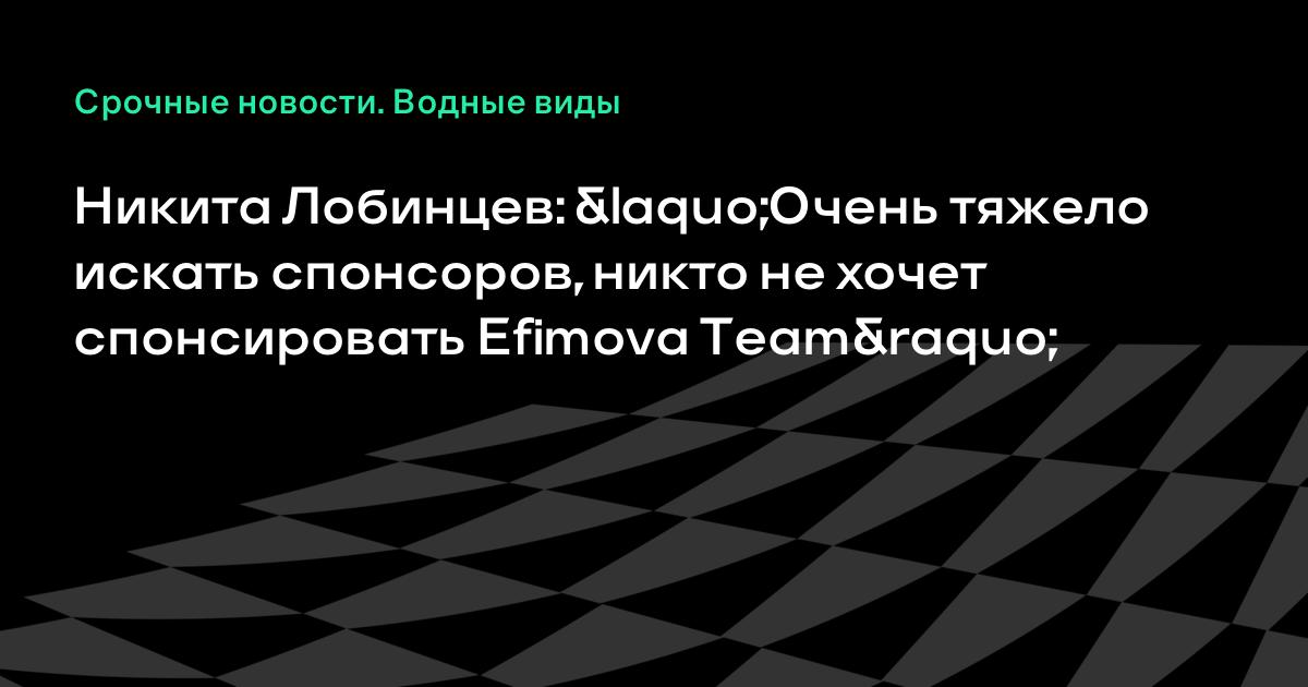 Российский пловец Никита Лобинцев сообщил, что для Efimova Team – команды четырехкратной чемпионки мира Юлии Ефимой – сложно найти спонсоров.