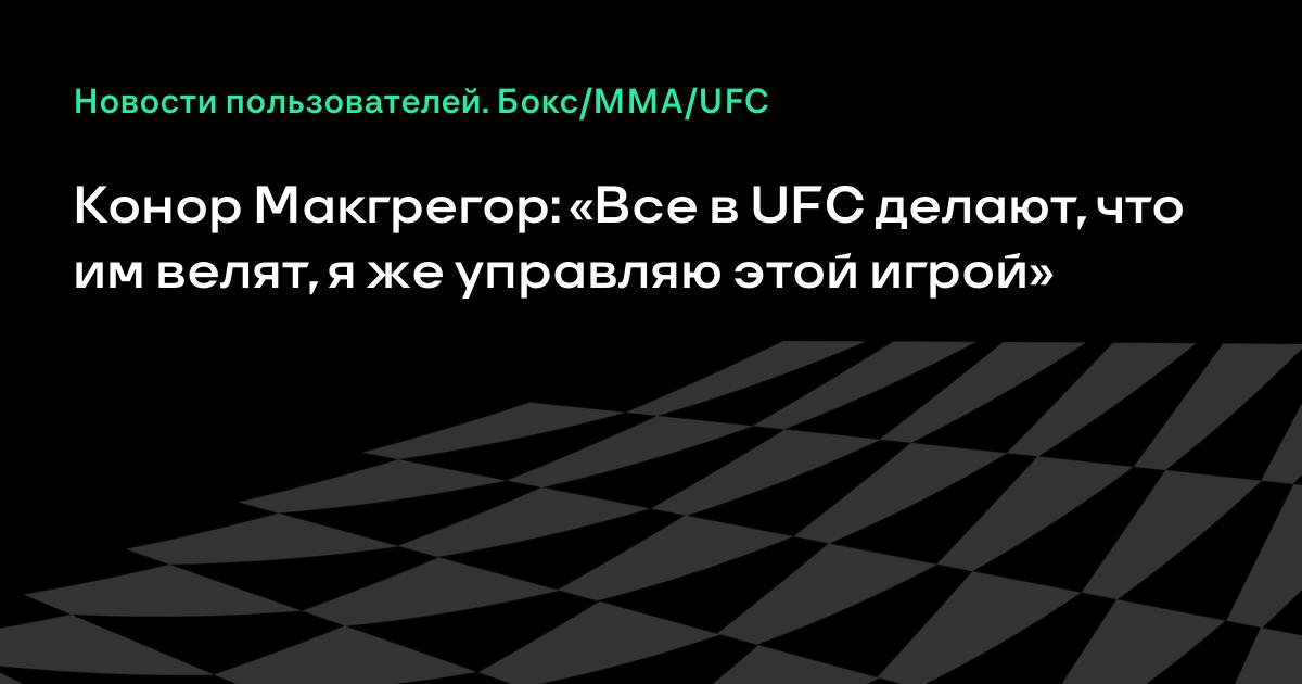 Конор Макгрегор: «Все в UFC делают, что им велят, я же управляю этой игрой»