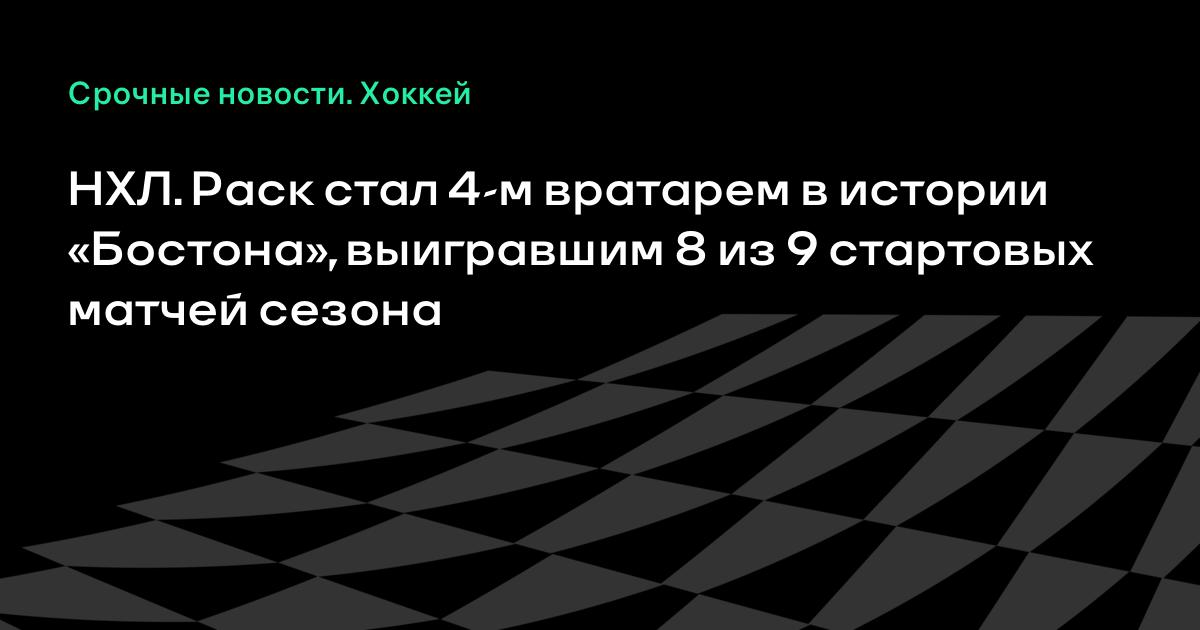НХЛ. Раск стал 4-м вратарем в истории «Бостона», выигравшим 8 из 9 стартовых матчей сезона