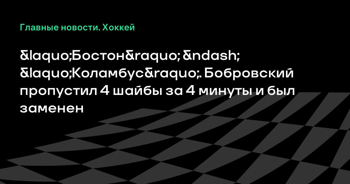 «Бостон» – «Коламбус». Бобровский пропустил 4 шайбы за 4 минуты и был заменен