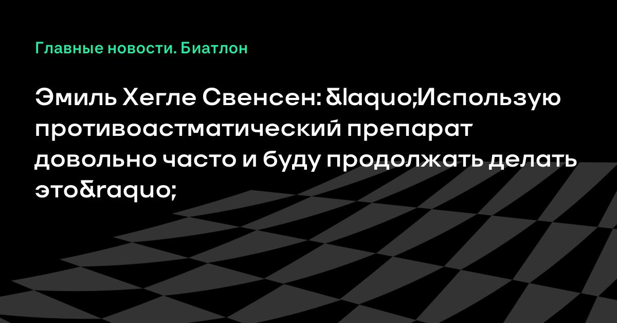Норвежский биатлонист Эмиль Хегле Свенсен рассказал, что регулярно использует лекарство от астмы и не планирует вносить изменения в схему приема, несмотря на астма-скандал в норвежских лыжных гонках.