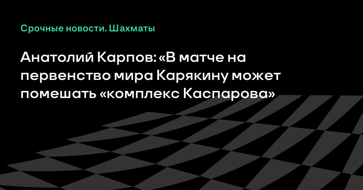 12-й чемпион мира по шахматам Анатолий Карпов оценил шансы россиянина Сергея Карякина в матче на первенство мира против норвежца Магнуса Карлсена.