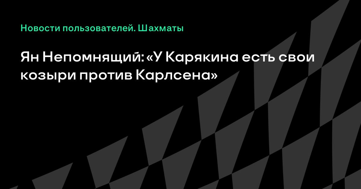 Чемпион Европы, 12-й номер в текущем рейтинге FIDE Ян Непомнящий оценил шансы россиянина Сергея Карякина в матче на первенство мира против норвежца Магнуса Карлсена.